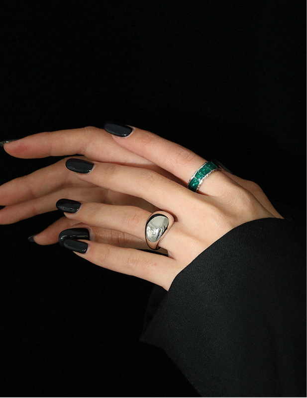 INS niche design minimalist geometric curved surface smooth texture S925 pure silver open ring for women